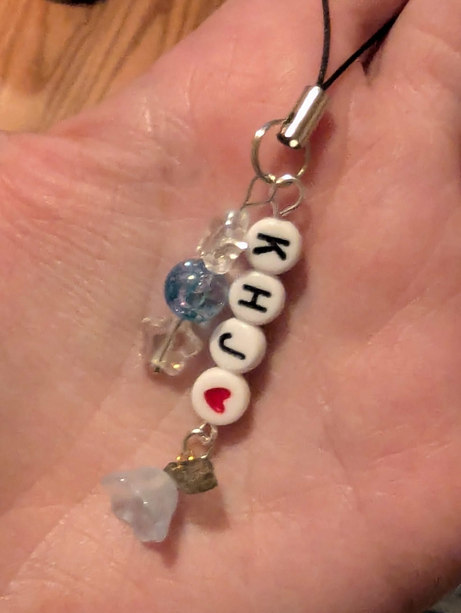 Fan made phone charm with each ateez members initials and a cute flower at the end. Put together by me by hand. Willing to customize.